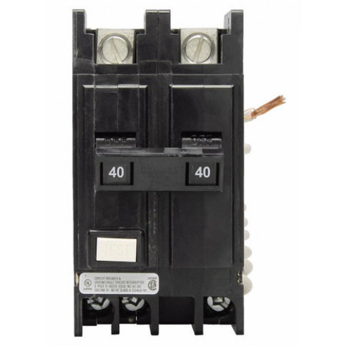 Eaton QCGFT2040 - Industrial ground fault CB Supplementary protector, QC, 40A, Ground Fault Self Test, Two-pole, 120/240V, 10 kAIC, #14-4 AWG wire