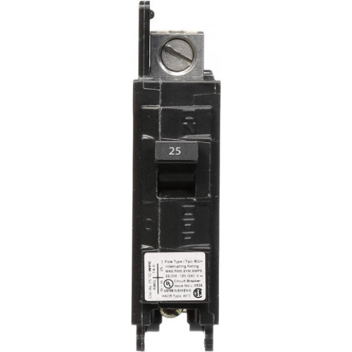 BQ1B025H Bolt - On Molded Case Circuit Breaker Siemens BQ series single pole 25 ampere bolt - on molded case circuit breaker with maximum voltage rating of 240V at 60Hz tripping method thermal magnetic and hig interrupting rating of 22 kiloampere at 120V complete with non - interchangeable ... - Siemens