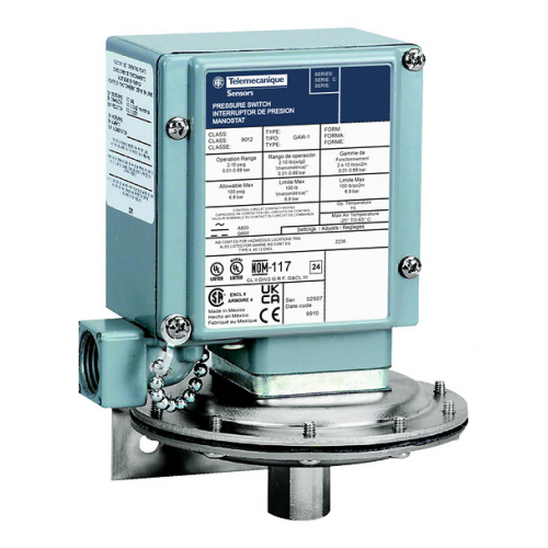 9012GAW21 - Pressure switch 9012G, adjustable scale, 2 thresholds, 0.2 to 10 PSIG - Telemecanique Sensors