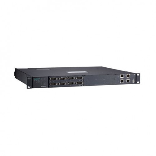 Moxa NPort S9650I-8-2HV-E-T | 8-port RS-232/422/485 rugged device server, 2 10/100BaseT(X) ports with IEEE 1588v2 support, 88 to 300 VDC or 85 to 264 VAC, -40 to 85°C operating temperature, with 2-port Ethernet RJ45 module