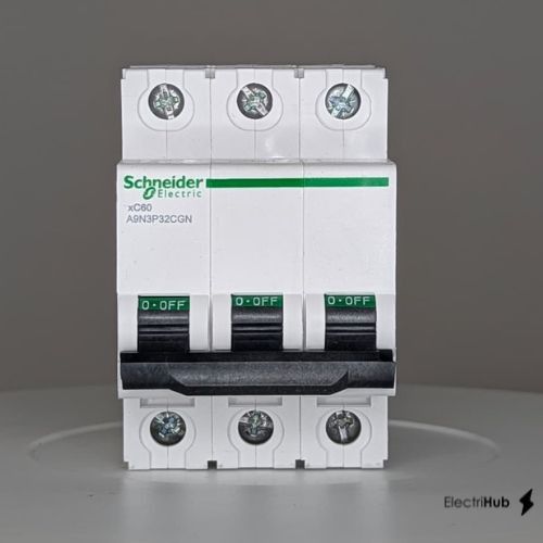 Schneider Electric A9N3P32CGN - This Acti9 xC60 is a low voltage biconnect miniature circuit breaker (MCB). It is a 3P circuit breaker with 3 protected poles and 32A In rated current with D tripping curve. The rated short circuit breaking capacity is up to 10000A ... View More