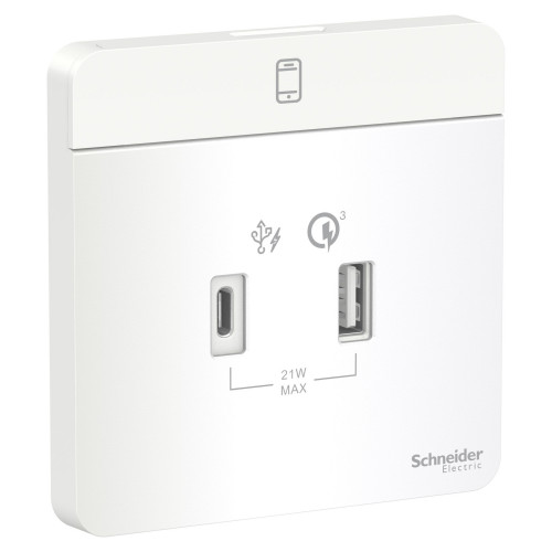 E8332ACQUSB_WE - AvatarOn, USB charger, type A + C, 2.1...¦3 A, White - Schneider Electric
