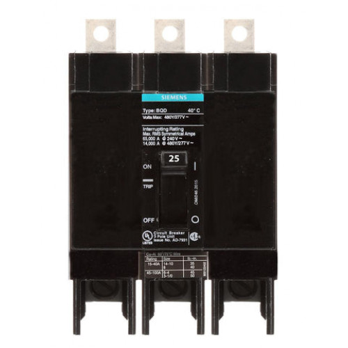 Tags: Brand Siemens/ITE, Breaker 3 Pole, Connection Bolt-On, Max Amp 25A, Size Full Body, Type BQD, Voltage 480V, 3 Pole Breakers Bolt-on Circuit Breakers Circuit Breakers ITE Breakers Siemens Breakers, Bolt-On, 25 Amp, 3 Pole, 480 Volt, SIEMENS, MCCB, BQD325, Siemens Bolt-On Molded Case Circuit Breaker Siemens / ITE Bolt-On Circuit Breaker Its Compact And Easy to Install three poles BQD type molded case circuit breaker finds application in load centers it has a voltage rating of 240 Vac/480 Vac Star/277 Vac At 60 Hz and current rating of 25 ... Electrihub