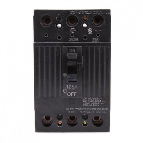 Tags: Brand GE, Breaker 3 Pole, Max Amp 125A, Size Full Body, Type THQD, Voltage 240V, 3 Pole Breakers Circuit Breakers GE Breakers Molded Case Breakers, Feed-Thru, 125 Amp, 3 Pole, 240 Volt, General Electric, MCB, THQD32125, Feed-Thru, 125 Amp, 3 Pole, 240 Volt Electrihub, GE THQD32125
