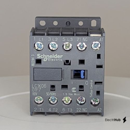 Tags: LC1K0601F7 Contactor, TeSys K, 3P, AC-3, lt or eq to 440V 6A, 1 NC aux., 110VAC coil, LC1K0601F7 Schneider Electricelectrihub, electrical-supplies, electrical-supply-store, LC1K0601F7 Motor control, LC1K0601F7 Contactor