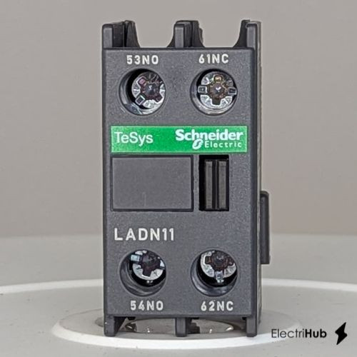 Tags: Schneider LADN11, LADN11, TeSys Deca, auxiliary contact block, 1 NO and 1 NC, top mount, screw clamp terminals, for LC1D09 to LC1D150 contactors, LADN11 TeSys Deca, LADN11 auxiliary contact block