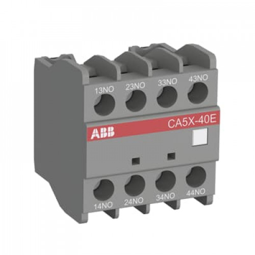 1SBN019040R1022 ABB CA5X-22E - CA5X-22E is a 4-pole front mounted auxiliary contact block equipped with screw terminals. CA5X-.E version offers terminal assortment matching the marking of 3-pole AX50.150 contactors. CA5X-22E is available with 2 N.O. and 2 N.C. instantaneous contacts for standard industrial environments. We are ... View More
