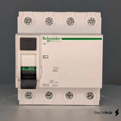 Tags: Schneider, RCCB, A9N16261, Acti9, 30mA, 80A, 4P, Type-AC, RCCB, electrihub, electrical-supplies, electrical-supply-store