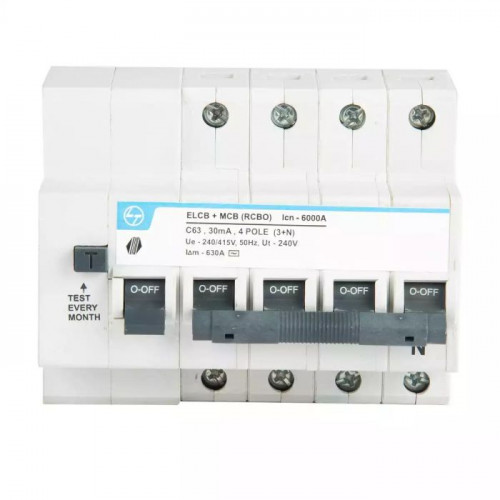 CB90002OOTO - Tripper RCBO(EL+MCB) 6A FP 415V AC 6kA 30mA C Curve | Lauritz Knudsen | L&T