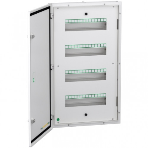 Schneider Electric A9HFD456Z - This Acti9 product is a flush or surface mounted flexi tier distribution board,It is 4 tier 56 modules,It comes with a double door and the door opening side is reversible,The enclosure material is made of steel,The color of the distribution board is ... View More