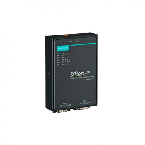 Moxa UPort 1250 | 2-port RS-232/422/485 USB-to-serial converter, 0 to 60°C operating temperature
