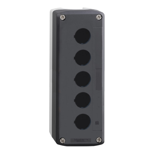 XALD05 - Empty enclosure, plastic, dark grey lid, for push button Ø22, 5 cut-outs - Schneider Electric
