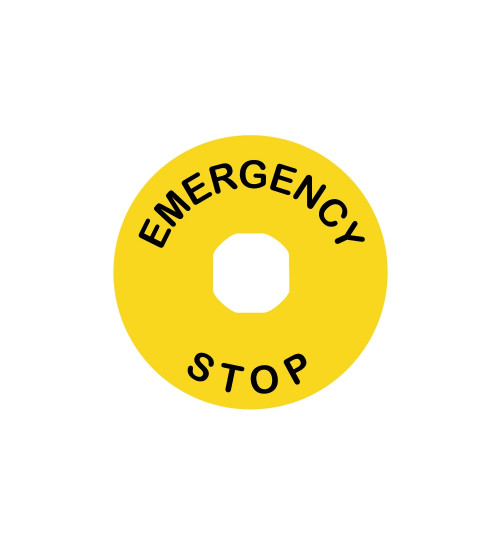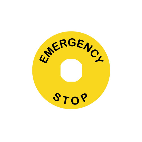 ZBY9330N - Marked ring legend, Harmony XB5N XB7N, plastic, yellow, 60mm, marked 'Emergency Stop' - Schneider Electric