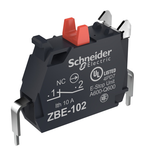 Schneider Electric ZBE102N - This Harmony XB5N/XB7N, single contact block uses screw clamp terminals,The single contact block features with protected terminals,It is easily installed and replaced on XB5N/XB7N complete push-button units and selector switches via a clip assembly and connects to control circuits with simple screw-clamp ... View More