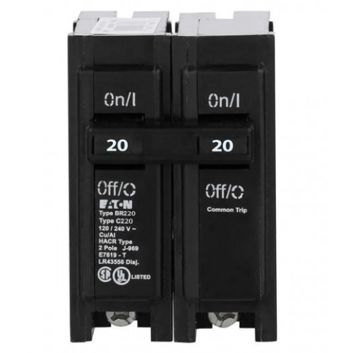 Tags: Eaton BR220, BR, Thermal magnetic circuit breaker, 1-Inch, plug-on circuit breaker, 20A, 10kAIC, Two-pole, 120/240V, Common breaker trip, br220 Eaton, br220, Brand-Eaton Cutler-Hammer, Breaker-2 Pole, Connection-Plug-In, Max Amp-20A, Size-Full Body, Type-BR, Voltage-240V, 2 Pole Breakers, 20 Amp Breakers, Circuit Breakers, Eaton Cutler-Hammer Breakers, Plug In Circuit Breakers