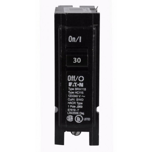 Eaton BRH130 - BR thermal magnetic circuit breaker,Type BR 1-Inch plug-on high-magnetic circuit breaker,30 A,22 kAIC,Single-pole,120/240V,BRH,#14-4 AWG Cu/Al,BRH,Type BR Loadcenters