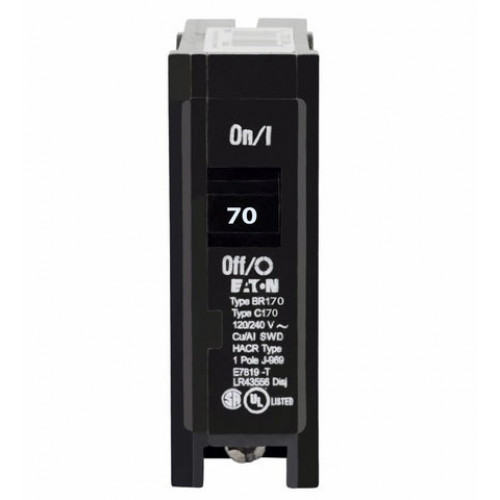 Eaton BR170 - BR thermal magnetic circuit breaker,Type BR 1-Inch plug-on circuit breaker,70 A,10 kAIC,Single-pole,120/240V,BR,#4-1/0 AWG Cu/Al,BR,Type BR Loadcenters