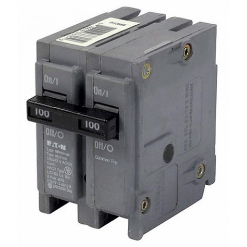 Eaton BRH2100 - BR thermal magnetic circuit breaker,Type BR 1-Inch plug-on circuit breaker,100 A,22 kAIC,Two-pole,120/240V,BRH,Common breaker trip,#4-1/0 AWG Cu/Al,BRH,Type BR Loadcenters