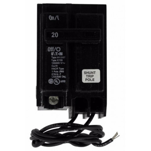 Eaton BR120ST - BR thermal magnetic circuit breaker,Type BR 1-Inch plug-on circuit breaker,20 A,10 kAIC,Single-pole,120/240V,BR,#14-4 AWG Cu/Al,Q1,BR,Type BR loadcenters,Shunt trip included