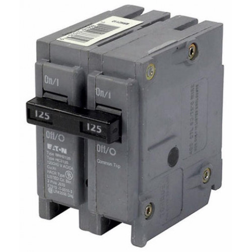 Eaton BRH2125 - BR thermal magnetic circuit breaker,Type BR 1-Inch plug-on circuit breaker,125 A,22 kAIC,Two-pole,120/240V,BRH,Common breaker trip,#4-2/0 AWG Cu/Al,Q28,BRH,Type BR Loadcenters