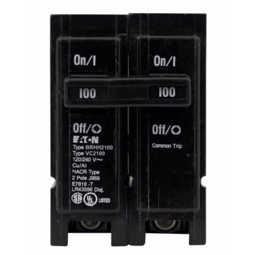 Eaton BRHH2100 - BR thermal magnetic circuit breaker,Type BR 1-Inch plug-on circuit breaker,100 A,42 kAIC,Two-pole,120/240V,BRH,Common breaker trip,#4-1/0 AWG Cu/Al,Q28,BRH,Type BR Loadcenters