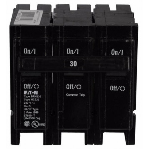 Eaton BRH330 - BR thermal magnetic circuit breaker,Type BR 1-Inch plug-on circuit breaker,30 A,22 kAIC,Three-pole,120/240V,BRH,#14-4 AWG Cu/Al,BRH,Type BR Loadcenters. We are dedicatedly involved in providing an excellent quality products at Electrihub.