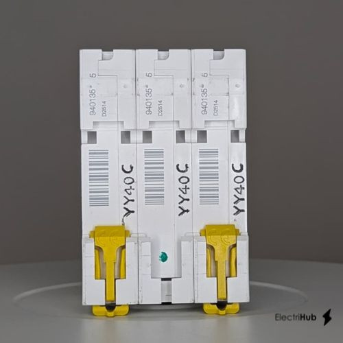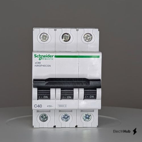 Schneider Electric A9N3P40CGN - This Acti9 xC60 is a low voltage biconnect miniature circuit breaker (MCB). It is a 3P circuit breaker with 3 protected poles and 40A In rated current with D tripping curve. The rated short circuit breaking capacity is up to 10000A ... View More