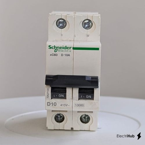Tags: Schneider, MCB, A9N2P10D, XC60, 10A, 2P, 10kA, Curve-D, MCB, electrihub, electrical-supplies, electrical-supply-store