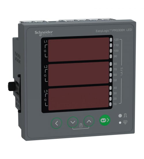 Schneider Electric METSEPM1120HCL10RD - The EasyLogic PM1000H series basic power and energy meters offer all the measurement capabilities required to monitor an installation. Measured parameters are power, energy (delivered only), harmonic distortion and selectable demand energy. The navigation is assured by 4 panel buttons. The meter ... View More