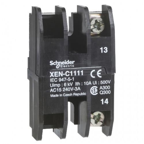 Schneider Electric XENC1111 - This Harmony XENC1111 is a spring return contact block 1 NO front mounting, 30 or 40mm centres. It is part of the range Harmony XAC pendant control stations for diameter 22mm plastic signaling units. It is designed for single speed applications. We ... View More