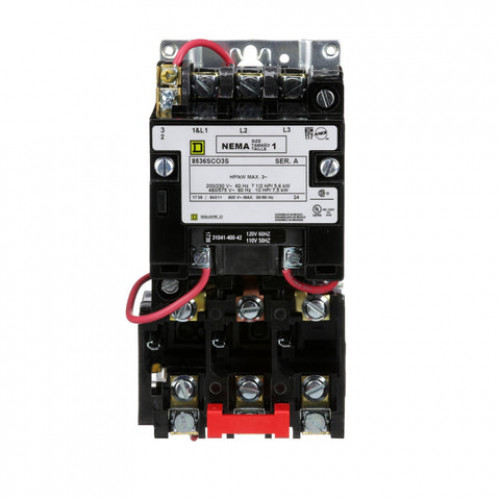 Tags: Brand Square D, Breaker 3 Pole, Max Amp 27A, Type SCG, Voltage 600V, 3 Pole Breakers Schneider Electric Starters, 27 Amp, 3 Pole, 600 Volt, Schneider Control Motor Starters, Schneider Control Motor Starters 8536SCO3V03, 8536SCO3V03 - NEMA motor starter, Type S, nonreversing, Size 1, 27A, 10HP at 460VAC, 5kA SCCR, 3 phase, 3 pole, melting alloy, 240VAC coil, open | Schneider Electric, NEMA Model, 27A Current Rating, 5.59-10kW kW Rating, 220-575Vac Control Voltage, Electrihub