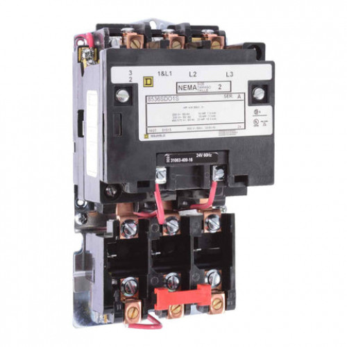 Schneider Electric 8536SDO1V03 - Type S NEMA motor starters are used for full voltage starting and stopping of AC squirrel cage motors. Type S motor starters have ratings up to 810 amperes. This 3 pole NEMA Size 2 non-reversing starter has a 45 ampere rating. This ... View More